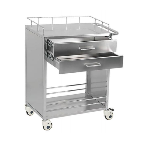 Ziekenhuis Roestvrij Staal Met Twee Lade Medische Instrument Trolley, Verpleging Roestvrijstalen Trolley